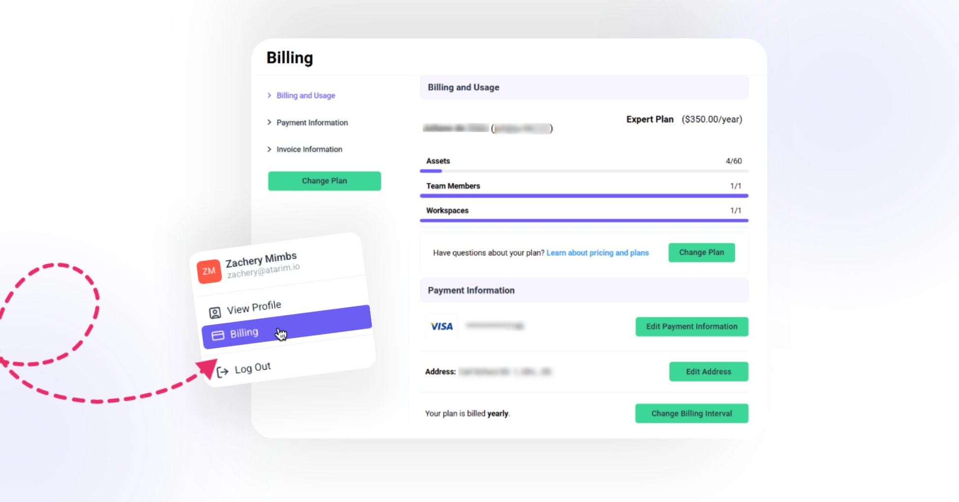 Keeping your billing information up to date ensures uninterrupted access to Atarim and helps you stay in control of your subscription. Whether you’re updating your payment method or changing your billing cycle, this guide walks you through every option available on the Billing Page.
