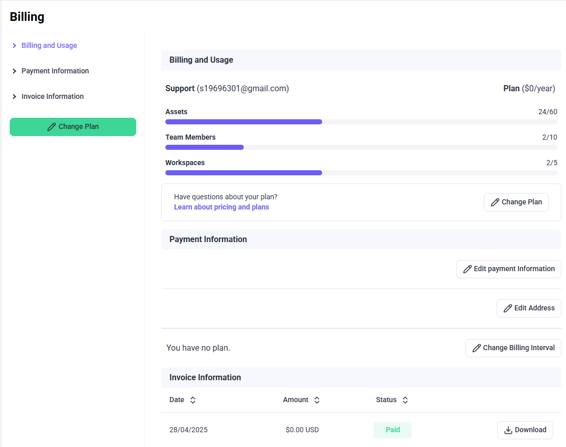 • Upgrade or downgrade your subscription plan to align with your current needs.