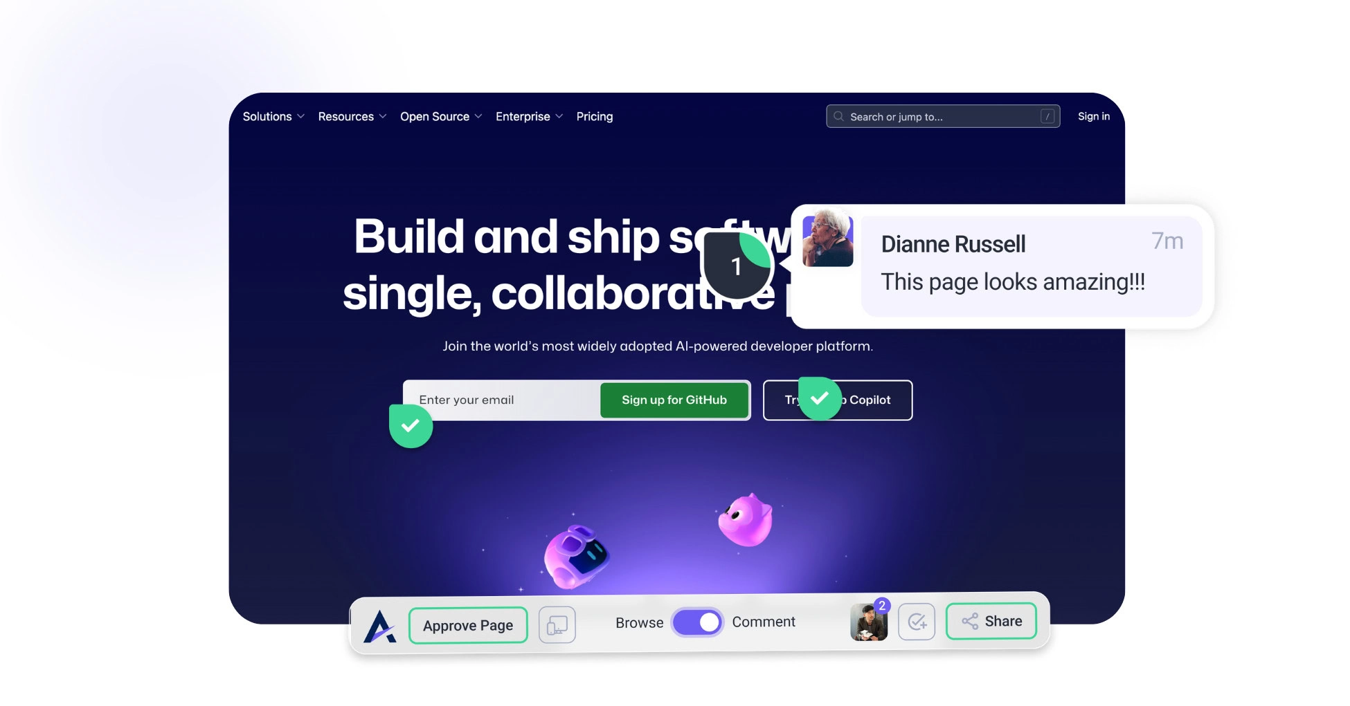 • Clear Feedback in One Place: Clients can leave feedback right where it matters most—on the specific design or web page element they want to discuss.