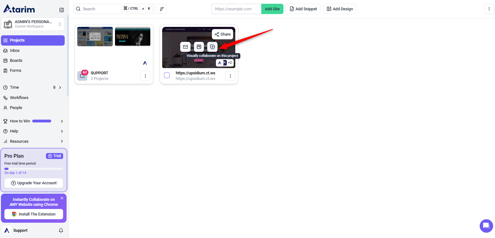 Recommendation: If you manage multiple websites, use the folders and labels feature in Atarim to organize projects and improve navigation efficiency.