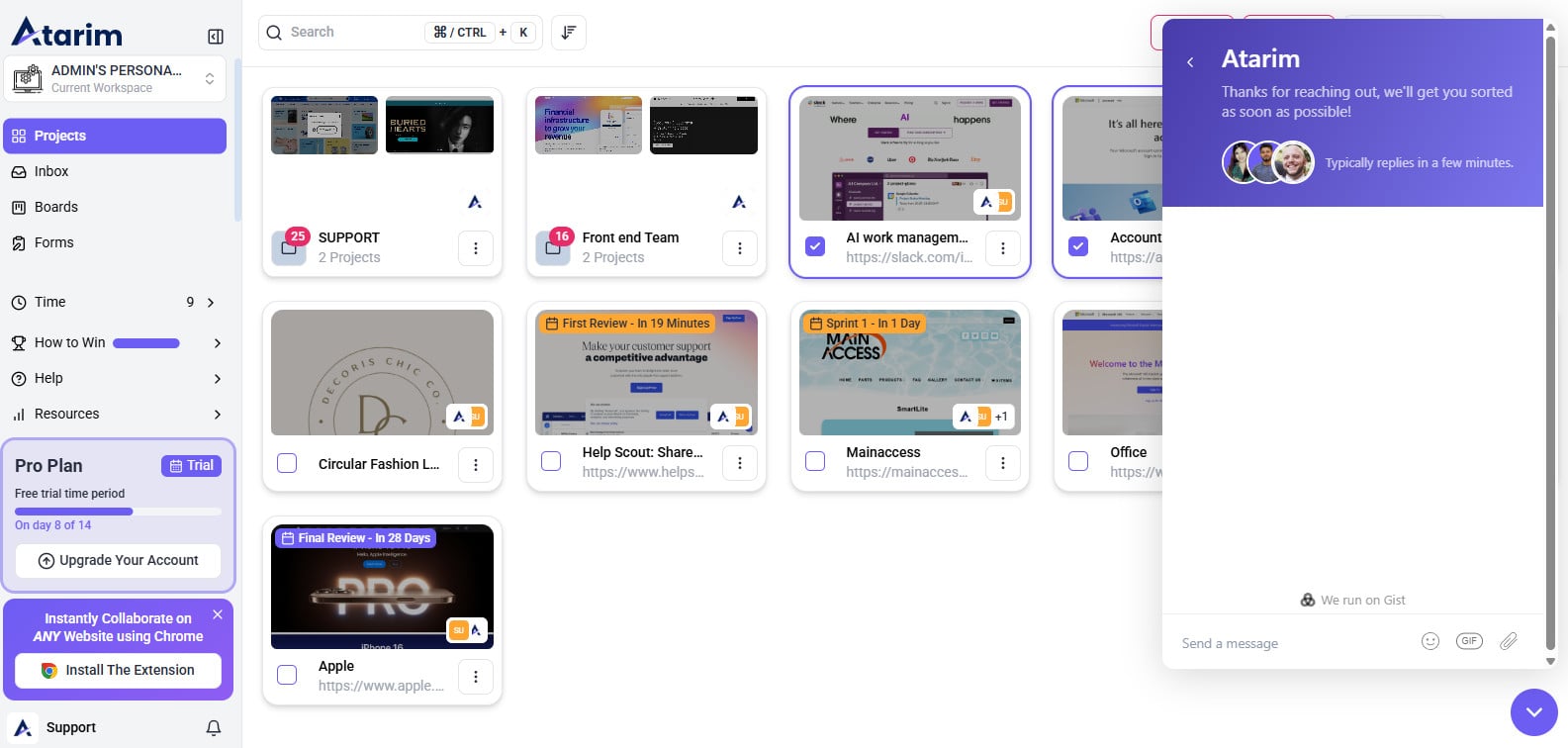 Atarim primarily offers support via messenger and email, but if your issue requires more in-depth troubleshooting, the team may suggest scheduling a call or screen-sharing session.