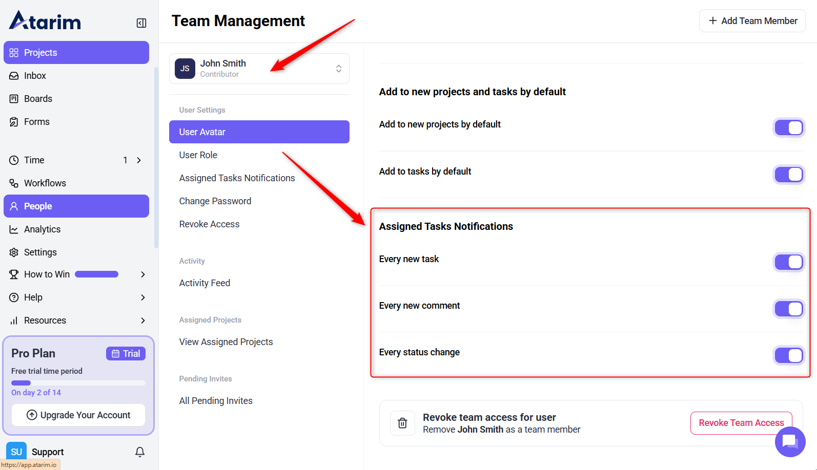 - Customize how often you and your team receive updates (e.g., email notifications for new comments, task completion updates).