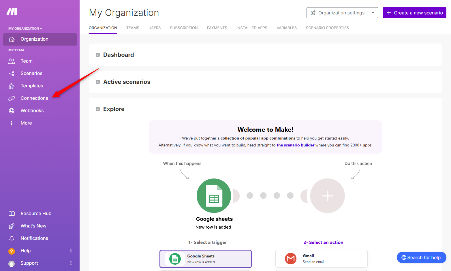 - Log in to Make.
