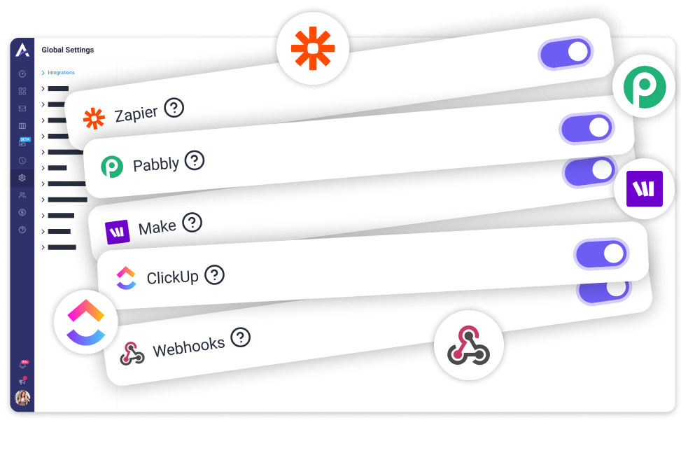 Powered by Zapier, Pabbly, Make, and Webhooks – we integrate with most platforms.